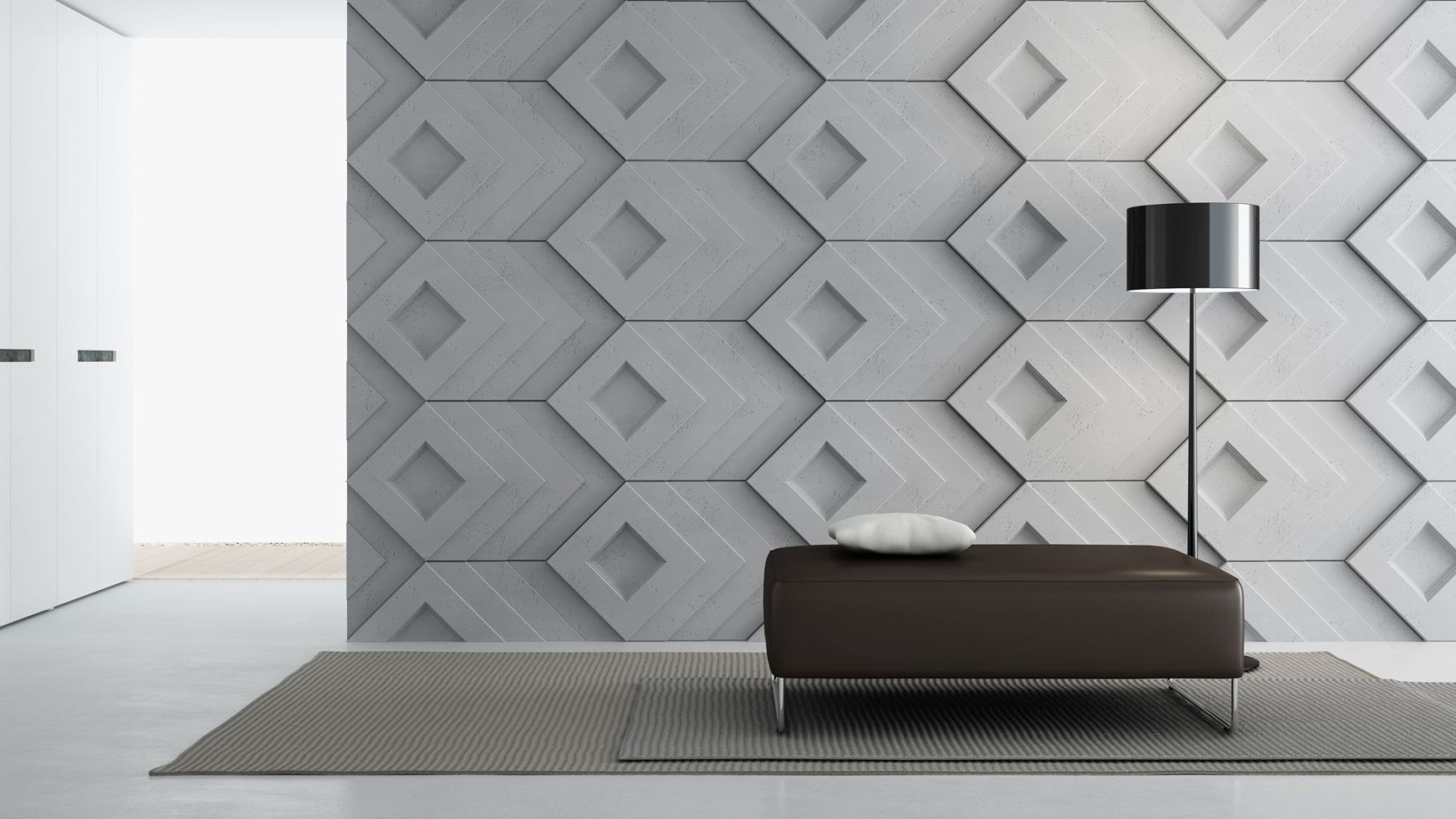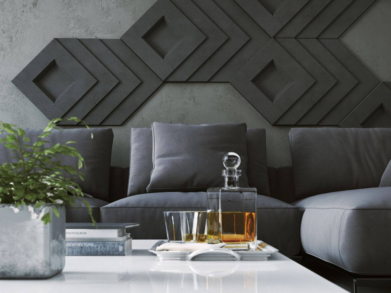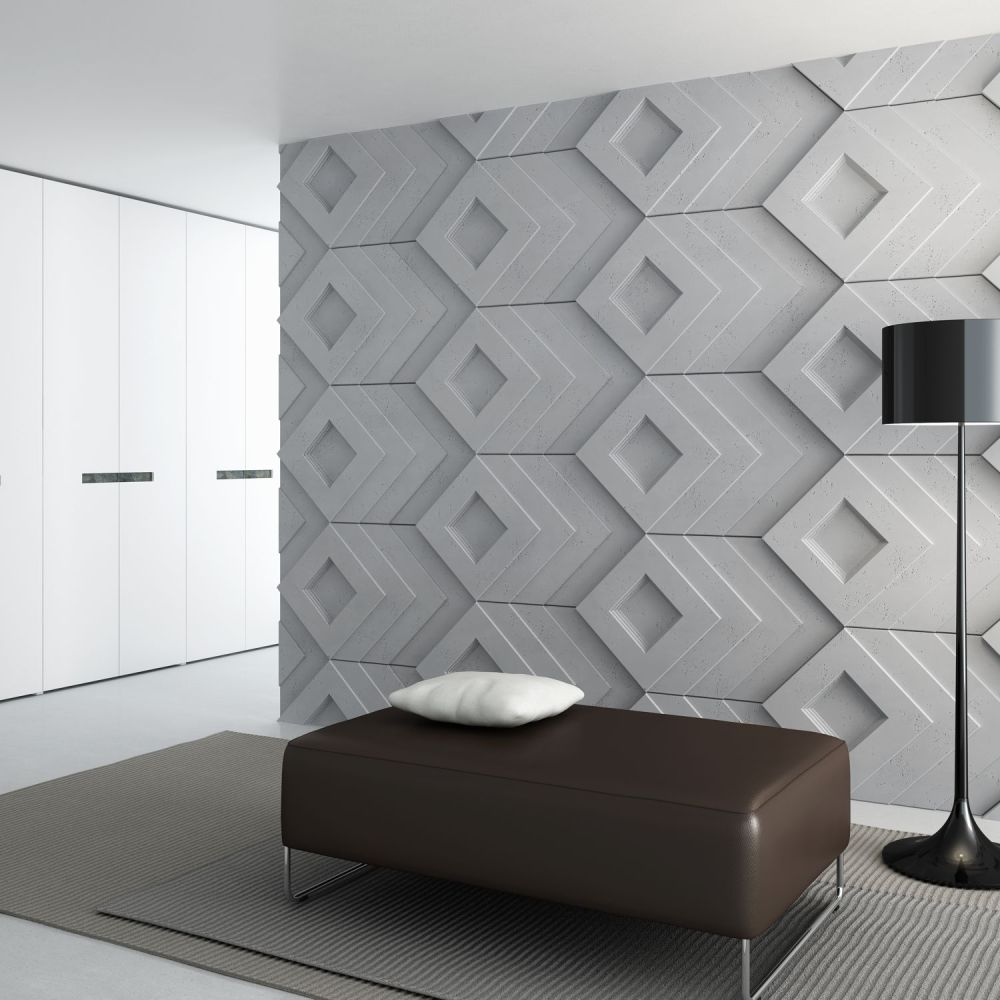 Niezwykle ciekawy, geometryczny wzór na panelu z betonu architektonicznego w kształcie wielokątu. Motywem przewodnim jest kształt rombu, wielokrotnie zachodzący na siebie, dzięki czemu całą struktura zyskuje efekt głębi, przypominający strukturę tkaniny. Wzór do zastosowań we wnętrzach, nowoczesnych, modernistycznych i jako przełamanie wnętrz minimalistycznych.